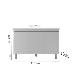 Balcão Gabinete De Pia Sem Tampo 120cm 3 Portas Malu - Nathan Móveis Cor Preto