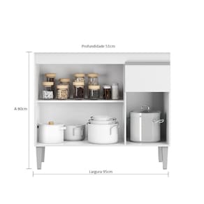 O ShoppingRM apresenta uma ótima opção para sua cozinha o Balcão de Cozinha Tatiane. Perfeito para quem procura praticidade junto com modernidade. Produzido com materiais de qualidade, proporcionando maior durabilidade e resistência ao produto. Com prateleira e amplo espaço interno, ajudará a manter seus utensílios sempre organizado. Obs: Lembrando que o produto não acompanha o tampo.
