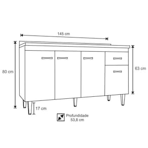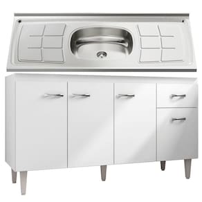 O Balcão Gabinete Com Pia Inox 150cm Gabriela da AJL Móveis é uma excelente peça para ser utilizada na sua cozinha e organizar seus utensílios. Conta com estrutura em MDP/MDF, 4 portas convencionais com amplo espaço interno e 1 gaveta para melhor auxiliar nessa tarefa, além disso, seu acabamento em pintura UV garante maior durabilidade e resistência. Outro diferencial são os pés reguláveis que facilitam a posição do móvel. Um charme, não é mesmo?