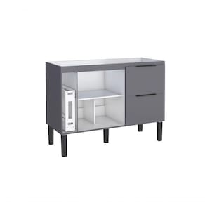 Balcão Para Cozinha Em Madeira Ipanema 120 com tampo - A linha de armários para cozinha Ipanema, é elegante e sofisticada, fabricada com chapas de madeira com acabamento em três versões de cores foscas em todo exterior, possui porta condimentos em aço, prateleira e divisão interna para organizar utensílios, duas gavetas com puxadores exclusivos em estilo minimalista e uma gaveta embutida, dobradiças com amortecimento e pés na cor preta com regulagem de altura.