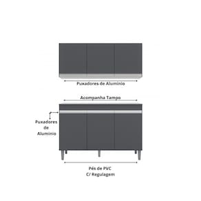 O Balcão Gabinete de Pia 120cm 3 Portas e Aéreo 3 Portas Manu - AJL Móveis integra-se com os demais móveis para criar um ambiente perfeito. Este Balcão com Tampo pode armazenar desde ingredientes, potes, acessórios e o que sua necessidade precisar. Tudo isso com estilo e praticidade você vai contar. Agora é o momento perfeito de adquirir este lindo Balcão e funcional para agregar charme, beleza e sofisticação para sua cozinha. Não perca esta oportunidade, peça já o seu.