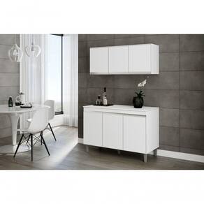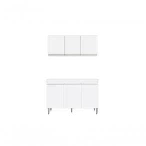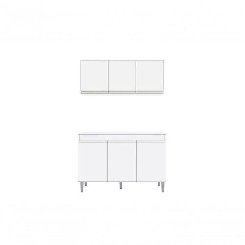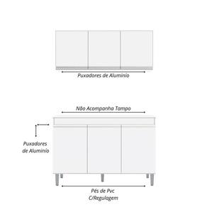 Balcão Gabinete Manu 120 Cm S/tampo E Armário Aéreo Andreia 120cm - Ajl Móveis Cor Branco