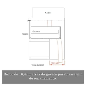 Recuo de 16,4 cm atrás da gaveta para passagem do encanamento.