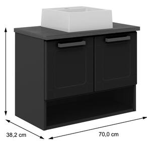 Estrutura: : : : : : : : AçoAcabamento: : : : : : : : Pintura Eletroestática a PóTampo: : : : : : : : Em MDF BP, na coloração Nogueira CaienaPorta: : : : : : : : Sim, 02 portas de abrir, com dobradiças metálicasPrateleira: : : : : : : : Sim, 01 prateleira Nicho: : : : : : : : Sim, 01 nicho para melhor acomodação dos objetosPuxador: : : : : : : : Sim, em ABS com aplicação de verniz U.V: : : : : : : :