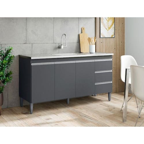 Balcão Gabinete Para Cozinha Andréia 160 cm com Tampo