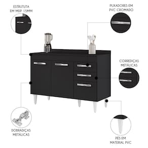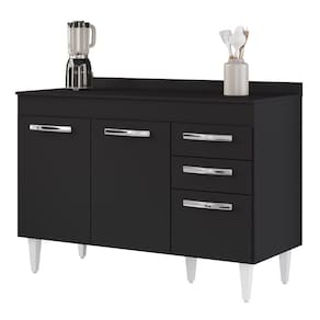 Na hora de escolher o móvel que vai compor o ambiente é preciso estar atento, afinal com cozinhas cada vez menores, deve ser compacto e funcional assim como o Balcão Gabinete Para Pia 120cm 3 Portas com Tampo Suécia Preto, da Lumil.