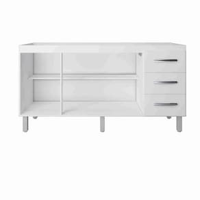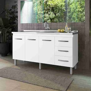 Com medidas de 83,5 cm de altura (com pés), 148 cm de largura e 50 cm de profundidade, é compatível com pias de 150 cm. Os 6 pés plásticos com regulagem para nivelamento garantem estabilidade mesmo em pisos irregulares. Os puxadores cromados completam o visual sofisticado do móvel.