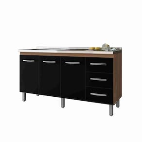 Com medidas de 83,5 cm de altura (com pés), 148 cm de largura e 50 cm de profundidade, é compatível com pias de 150 cm. Os 6 pés plásticos com regulagem para nivelamento garantem estabilidade mesmo em pisos irregulares. Os puxadores cromados completam o visual sofisticado do móvel.
