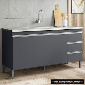 Se você está procurando um balcão compacto, prático e funcional para a sua cozinha o Balcão Gabinete Para Pia 160cm 3 Portas Andréia Cinza, da AJL Móveis é perfeito!