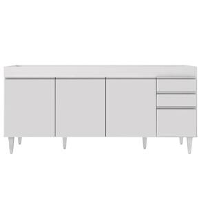 Balcão Gabinete Para Pia 180cm Sem Tampo Dallas Branco - Lumil Em um cômodo que exige funcionalidade, o Balcão para cozinha Dallas é a escolha perfeita! Conheça os motivos! Fabricado em MDP com acabamento em pintura UV, o Balcão Gabinete Dallas é uma excelente opção para quem tem uma cozinha com amplo espaço disponível para louça, panelas e demais acessórios utilizados neste ambiente que podem ser aproveitados da melhor maneira. Além da estrutura, também conta com pés reguláveis em PVC, 4 portas convencionais com puxador em alumínio embutido e 1 prateleira interna. Além é claro, de 2 gavetas na lateral também com puxadores embutidos para facilitar o manuseio e com corrediças metálicas e espaço ótimo para guardar seus talheres e utensílios. Ah, não possui tampo, mas pode formar conjunto com tampo ou pia vendidos separadamente.