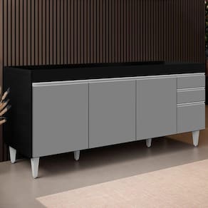 Balcão Gabinete Dallas Preto/Cinza é uma excelente opção para quem tem uma