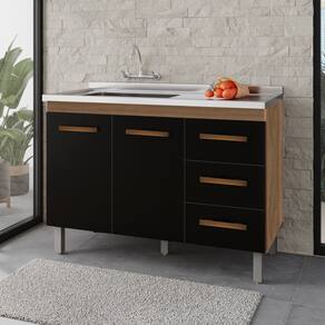 MDP 12 e 15mmBalcão Gabinete Para Pia Bia 02 Portas 03 Gavetas Sem Tampo - Desk Design