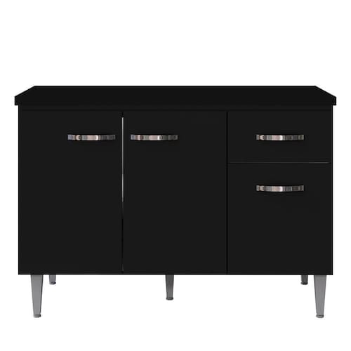 Conheça o Balcão Gabinete Com Tampo 120cm 3 Portas e 1 Gaveta Gabriela Preto, da AJL. Prático e funcional, para auxiliar no seu dia a dia!