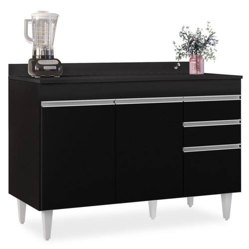 Procurando praticidade para suacozinha? Vem conhecer oBalcão Gabinete para pia com Tampo 120cm Michigan Preto, da Lumil!