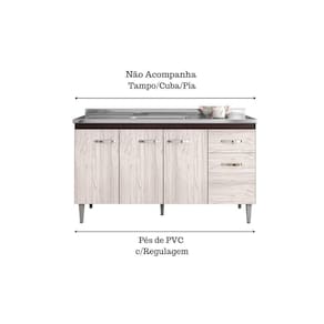 Balcão Gabinete Para Pia Gabriela Sem Tampo 150cm 4 Portas 1 Gaveta - Ajl Móveis Cor Marrom