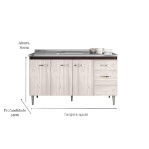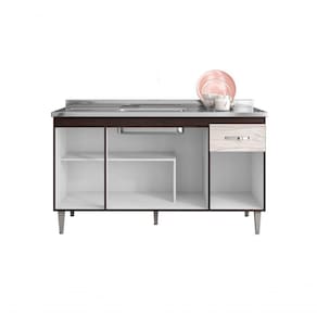 Balcão Gabinete Para Pia Gabriela Sem Tampo 150cm 4 Portas 1 Gaveta Marrom