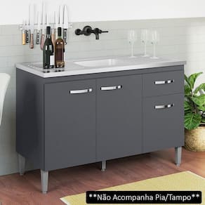 Conheça o Balcão Gabinete Para Pia Sem Tampo 120cm 3 Portas e 1 Gaveta Gabriela Cinza, da AJL. Prático e funcional, para auxiliar no seu dia a dia!
