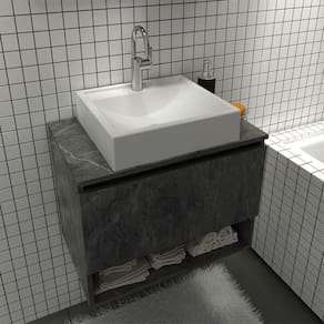 Dê um toque de elegância e praticidade ao seu banheiro com o Balcão Gabinete Suspenso Mármore Lunar! Fabricado em MDP 15 mm e com Acabamento em Pintura UV na cor, este gabinete oferece alta resistência à umidade e facilita a limpeza. A porta articulada com dobradiças metálicas garante abertura suave e segura, enquanto o design clean e moderno se integra perfeitamente a qualquer estilo de decoração. Aproveite o espaço otimizado do balcão para organizar seus itens de higiene pessoal e toalhas, deixando seu banheiro mais organizado e funcional. Suspenso do chão, facilita a limpeza e cria a sensação de um ambiente mais amplo. CARACTERÍSTICAS TÉCNICAS: - Estrutura em MDP 15 mm - Acabamento em Pintura UV na cor Mámore Lunar - Porta com Dobradiças Metálicas *Não acompanha Cuba INFORMAÇÕES TÉCNICAS: Altura: 46,5 cm Largura: 60 cm Profundidade: 38,7 cm Peso: 12 kg INFORMAÇÕES ADICIONAIS: *ATENÇÃO: Não trabalhamos e não nos responsabilizamos pela montagem do móvel. Antes da montagem conferir se o produto está de acordo com o que comprou, produto montado e danificado pela montagem não será aceito troca. **As imagens ambientadas são meramente ilustrativas e podem apresentar itens que não compõe o produto. As cores do produto podem variar de acordo com o monitor, a iluminação do ambiente ou sua percepção visual. ***Limpeza: Deve ser feita com pano macio e seco ou levemente umedecido com água e sabão neutro. Não devem ser utilizados abrasivos como palha de aço e objetos cortantes. Garantia para defeitos de fabricação conforme Código de Defesa do Consumidor.