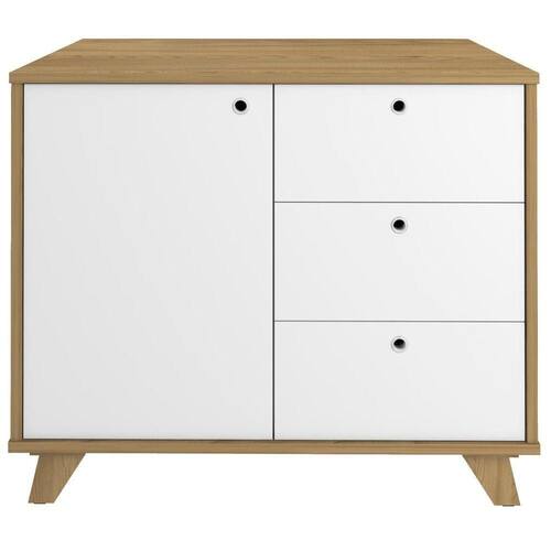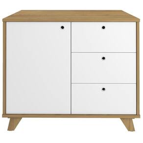 Balcão Gaveteiro com Porta Lugano Olmo/Branco - Balcão com prateleira interna com regulagem de altura.