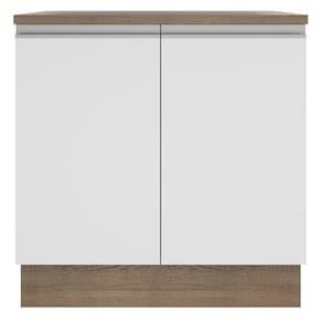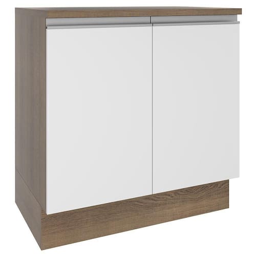 - Possui duas portas convencionais com puxadores em alumínio e dobradiças metálicas com amortecimento para o fechamento suave.