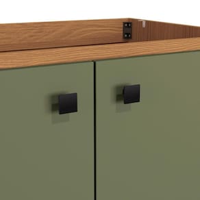 Com até sete camadas de pintura, a caixaria possui acabamento touch na cor canela, com a textura dos veios da madeira, enquanto as portas, em MDP e acabamento BP, são mais resistente contra riscos, arranhões e gotas d'água, e na cor verde frevo, possui acabamento fosco. Uma combinação aconchegante e moderna, que dará ainda mais destaque ao seu espaço, remetendo aos tons da natureza e deixando sua cozinha perfeita.
