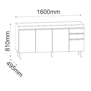 Dimensões do Balcão: Altura: 81 cm Largura: 160 cm Profundidade: 49,5 cm