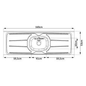 Dimensões da Pia: Altura do Tampo: 2,8 cm Altura da Cuba: 6,5 cm Largura: 160 cm Profundidade: 53 cm