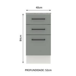 Este balcão de 40 cm da linha Agata da Madesa conta com três gavetas, sendo a última mais profunda.
