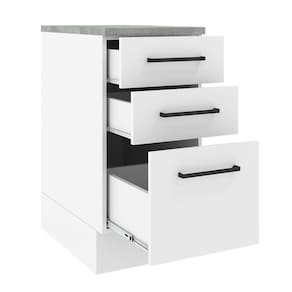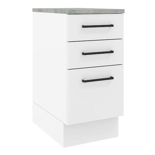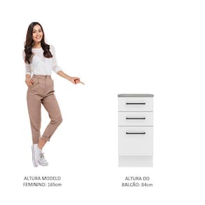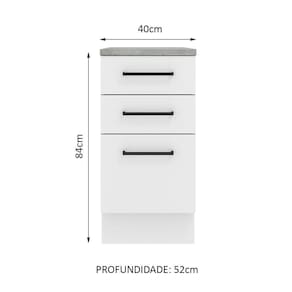 Este balcão de 40 cm da linha Agata da Madesa conta com três gavetas, sendo a última mais profunda.
