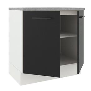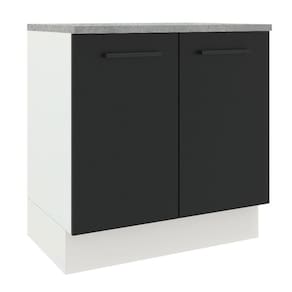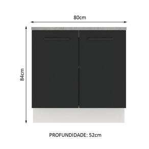 Balcão Madesa Agata 80 cm 2 Portas - Branco/Preto - Preto