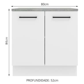 - Um (1) Balcão de 84 cm de altura x 80 cm de largura x 52 cm de profundidade com duas (2) portas, uma (1) prateleira interna e tampo