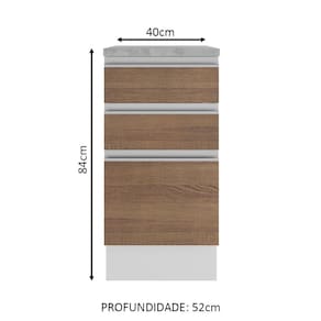 O Balcão com três gavetas de 40 cm da Madesa é feito com materiais de alta qualidade e Pintura Poliéster com 7 camadas protetoras que aumentam a resistência e durabilidade do móvel.