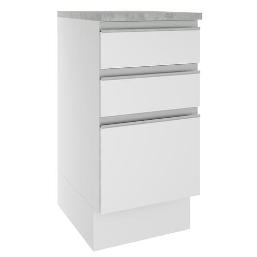 O Balcão com três gavetas de 40 cm da Madesa é feito com materiais de alta qualidade e Pintura Poliéster com 7 camadas protetoras que aumentam a resistência e durabilidade do móvel.