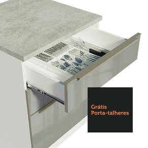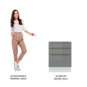 O acabamento da estrutura é branco e as frentes das gavetas são cinzas. O processo é feito em Pintura Poliéster ecológica, com sete camadas de proteção contra os efeitos da água e do calor.