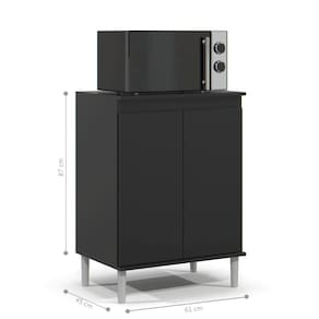 O Balcão Microondas é a peça que falta para transformar sua cozinha em um espaço mais organizado e funcional. Dimensões do produto montado: Altura: 87 cm Largura: 61 cm Profundidade: 45 cm Características: - Material MDP/MDF - Cor preto - Prateleira - Porta - Pés fixos Itens Incluso: 01 Balcão. Kit completo para montagem. Manual de montagem. Observações: - Não nos responsabilizamos pela montagem do produto. - Sistema de Montagem: Parafusos, Cavilhas e Tampos. - É recomendado que a montagem seja feita por um profissional qualificado. - As imagens indicam uma sugestão de uso e são apenas ilustrativas, os objetos decorativos não estão inclusos. - Ao iniciar a montagem, forre o chão com o papelão das embalagens para proteger as peças de arranhões. Instruções e Cuidados: Limpar com pano seco, manter em lugar livre de umidade, ao abrigo de exposição direta ao sol.
