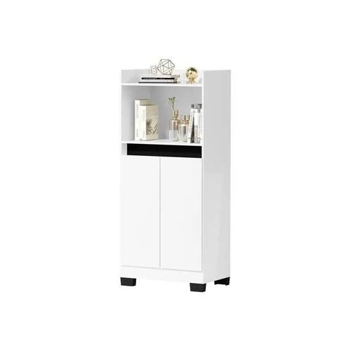 Portas: 2 Material: MDP Acabamento: Pintura UV Suporte Para Microondas: Sim Material dos Pés: Plástico Dobradiças: Metálicas