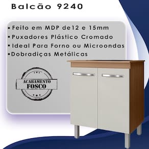 Balcão Multiuso Serena, é ideal para quem busca qualidade e sofisticação para compor sua cozinha da forma que desejar. Estrutura em MDP de 12 e 15 mm e tampo em MDF, acabamento em pintura UV. Composto por 02 portas articuladas com dobradiças metálicas, puxadores em plástico cromado, tampo em MDF com espaço para Microondas ou Forno, espaço para botijão de gás ou utensílios, possui uma prateleira interna removível, acompanham pés fixos de 16,5cm que garantem a firmeza que o móvel precisa, com regulagem de altura até 18 cm somente para nivelamento. Produzido com controle de qualidade e com excelente acabamento. Este móvel chegará em sua casa separado em 01 volume.