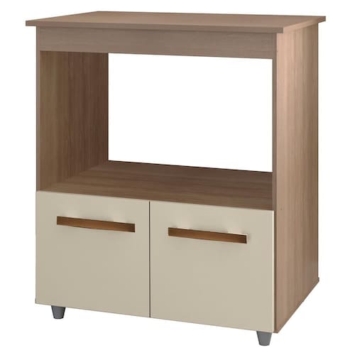 Balcão Multiuso Angela traz organização e praticidade para o seu dia a dia. Produzido em MDP (12/15 mm), com acabamento em pintura UV. Possui portas com dobradiças metálicas, nicho funcional para microondas/forno e puxadores e pés em plástico. Este produto será entregue em 01 volume.