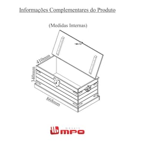 Seu design robusto é complementado por acessórios em ferro fundido com pintura epóxi preta fosca, que conferem sofisticação e reforçam o estilo marcante da Linha Imperial. Além de decorativo, o baú é extremamente funcional, sendo ideal para armazenar objetos, roupas, mantas e diversos itens do dia a dia.