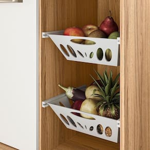 Balcão Multiuso Malu com Fruteira - Nicioli O Balcão Multiuso Malu com Fruteira é uma solução prática e funcional para a sua cozinha. Fabricado em MDP com pintura UV, garante resistência e durabilidade. Conta com uma porta com dobradiças metálicas e prateleira interna para melhor organização. O espaço dedicado para forno ou micro-ondas otimiza o uso do ambiente, enquanto as duas cestas removíveis facilitam o armazenamento de frutas e legumes. O tampo em MDP proporciona um acabamento sofisticado, e os pés de plástico asseguram estabilidade. O puxador em polietileno complementa o design moderno do móvel.