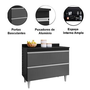 Balcão Multiuso para Cozinha com Tampo 2 Portas Diamante - Preto | Cinza