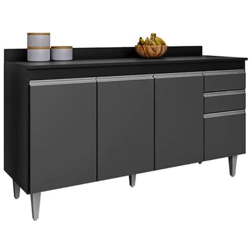 Seu tampo resistente oferece uma superfície prática para apoiar eletrodomésticos, utensílios ou itens decorativos, tornando o dia a dia mais ágil. Já as três portas garantem ótimo espaço interno para armazenar panelas, mantimentos, louças ou produtos de uso diário, mantendo tudo sempre organizado e ao alcance das mãos.