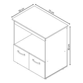 Medidas: 85,5 cm (A com pés) x 75 cm (L) x 50 cm (P). Os pés têm 5 cm de altura, são fixos e feitos em plástico resistente. Possui puxadores cromados e acabamento elegante que se adapta a diversos estilos de cozinha.