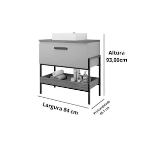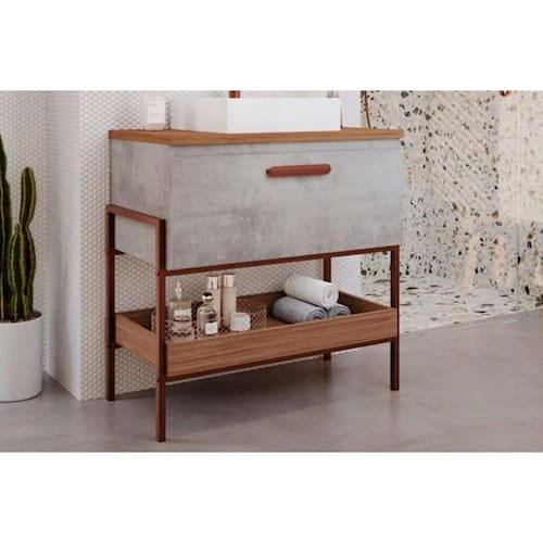 Gabinete de Banheiro Balcão Portinari 1 Porta c/ Cuba 80cm Cimento/Freijo - MGM