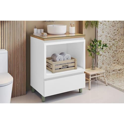 Gabinete de Banheiro Balcão Rainha c/ 1 Gaveta e 1 Nicho 70cm Branca/Nature - Nesher Marca: Nesher