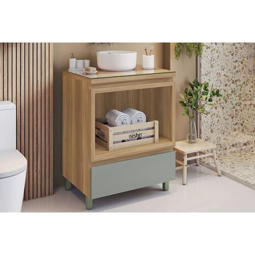 Gabinete de Banheiro Balcão Rainha c/ 1 Gaveta e 1 Nicho 70cm Nature/Verde - Nesher Marca: Nesher