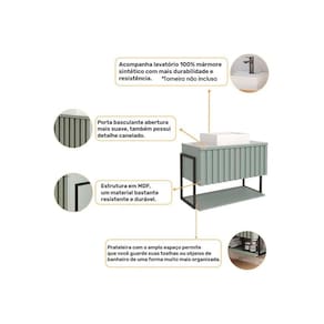 Material de Estrutura - Estrutura 100% MDF - Metalon Estilo do Móvel - Estilo Ripado Tipo de Pintura - Pintura Eletrostática a Pó Tipo de Acabamento da Pintura - Pintura Fosco Vantagens Extra dos Móveis de Banheiro e Lavanderia - Vidro Temperado - Sim Material da Cuba - Cuba em Mármore Sintético