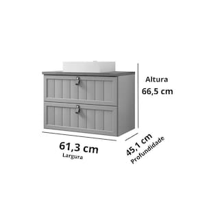 Gabinete de Banheiro Suspenso Sense c/Cuba 1 Gaveta e 1 Porta Basculante 60cm Titanium - MGM
