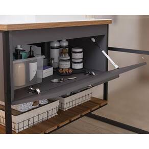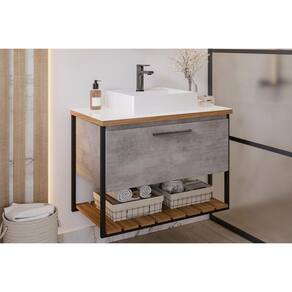 Conjunto de Banheiro Balcão Suspenso c/Cuba Vitta/Caribe 1 Porta Basculante e Tampo Vidro 60 cm cor Cimento - MGM Marca: MGM