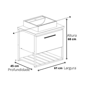 Dimensões(Cm): Comprimento(Profundidade): 45cm x Largura: 61cm x Altura: 68cm